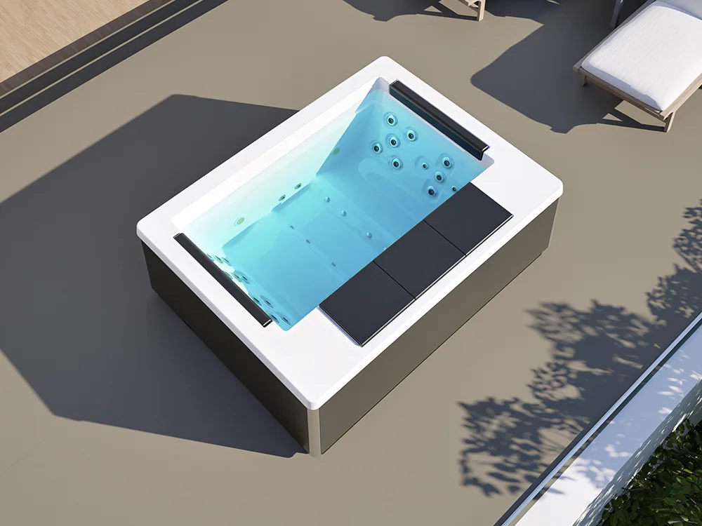Espacios residenciales rediseñados para el descanso diario: elegancia funcional, tecnología accesible y un estilo adaptado al hogar. Esta línea reúne lo esencial de un sistema de hidromasaje de calidad, con materiales avanzados de origen europeo e instalación simplificada para terrazas o interiores.
