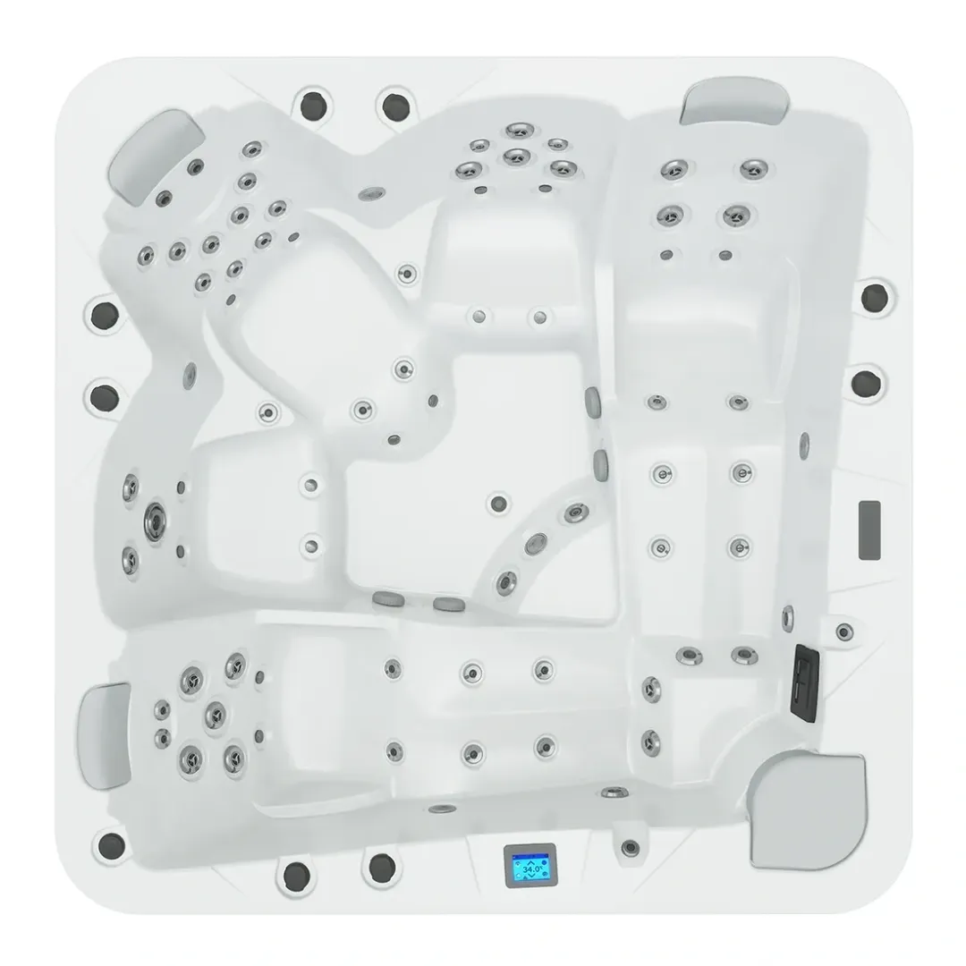 Udstyret med 52 vandstråler og 16 luftdyser tilbyder den en dybdegående massage med et indvendigt layout, der optimerer pladsen og gør hvert sæde til en aktiv terapeutisk zone.
