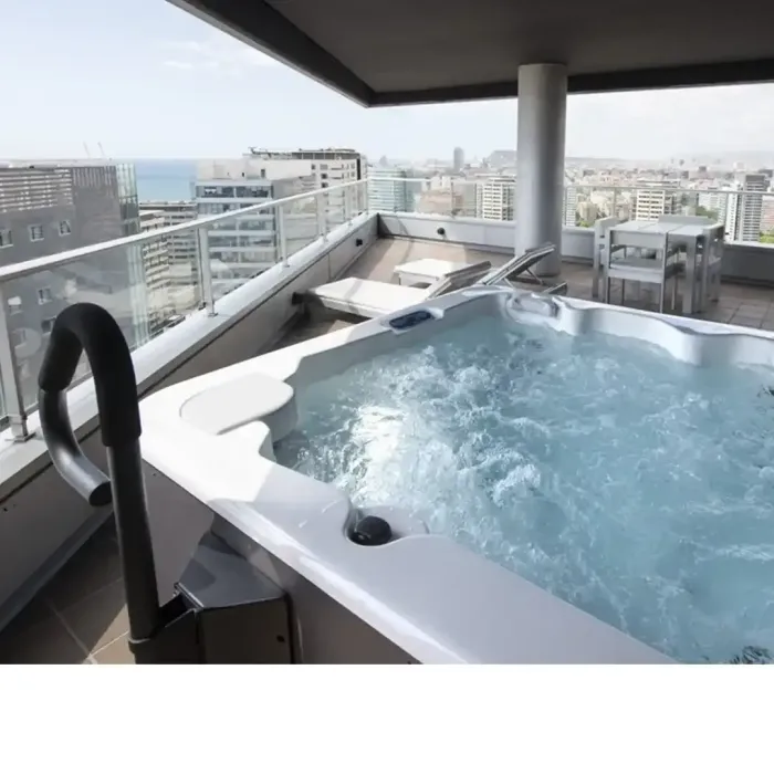 Det bedste tilbehør til at få adgang til spaen er Exclusive stigen. Den er designet med samme æstetik som Exclusive serien af spamøbler og består af et trin, der gør det nemt at komme ind og ud af spaen. Den fås i to farver: hvid og grå , samme nuance som Cube Ergo , Cube , Lounge og Home spamøblerne.