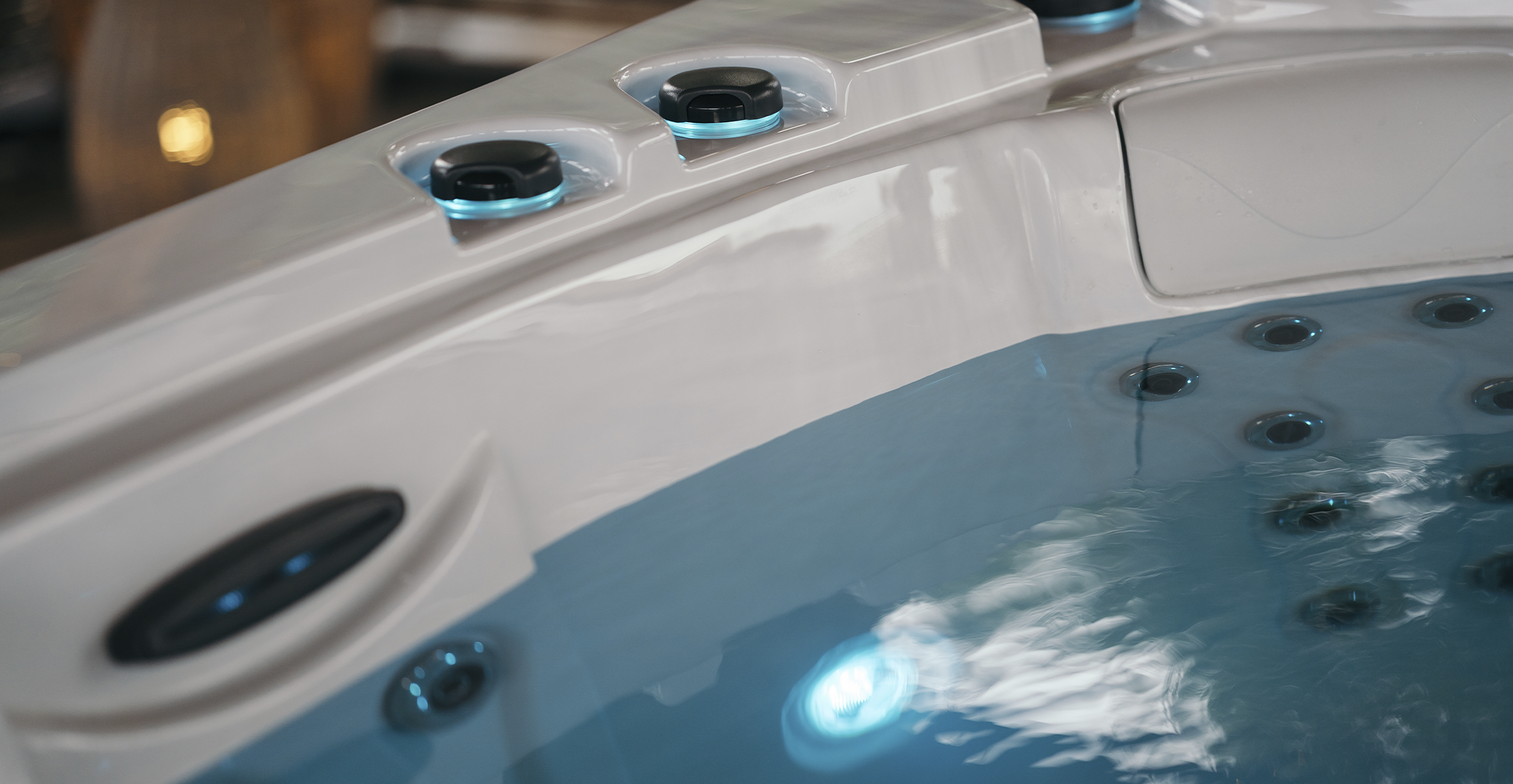 Los spas de Aquavia pueden programar ciclos de luz que varían automáticamente, ayudando a guiar la relajación. Por ejemplo, puedes iniciar tu sesión con luz azul suave y finalizar con un tono cálido como el ámbar, para una transición perfecta hacia el descanso nocturno.