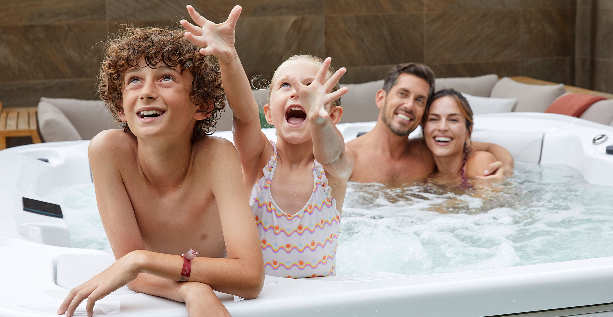 As crianças têm uma atração natural pela água. Uma piscina spa em casa permite que eles se familiarizem com o ambiente aquático desde muito cedo. Para bebês, você pode criar um espaço de estimulação com água a 33-34°C, semelhante ao usado nas aulas de natação para bebês. E para os maiores, há modelos com profundidade e comprimento suficientes (de 4 a 6 metros) para brincar, nadar ou simplesmente se divertir à vontade.