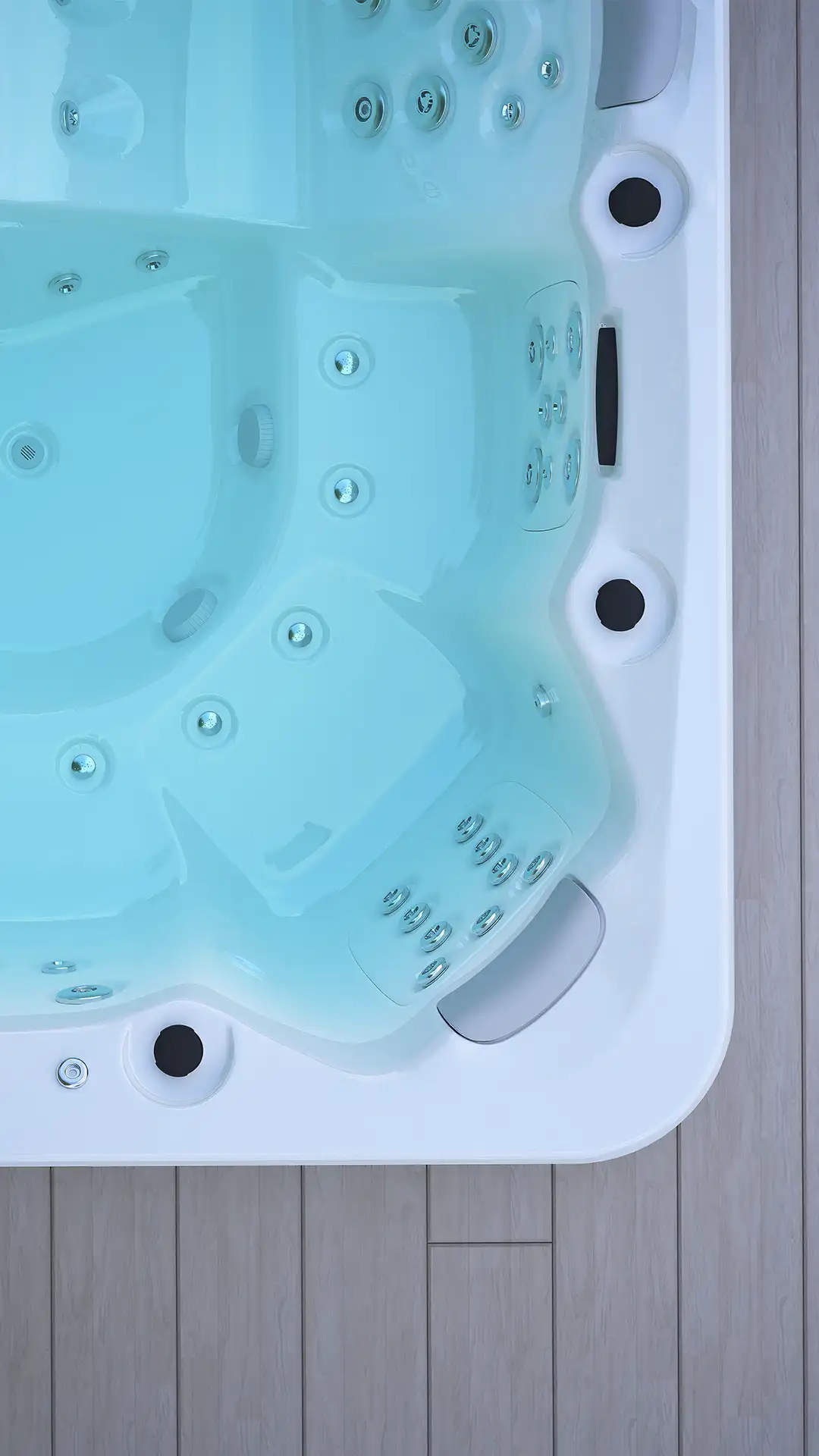 El jacuzzi Soft incluye opciones avanzadas para enriquecer tu experiencia de spa en casa, tales como luz ultravioleta para el tratamiento del agua y una potente cromoterapia para un ambiente personalizado.